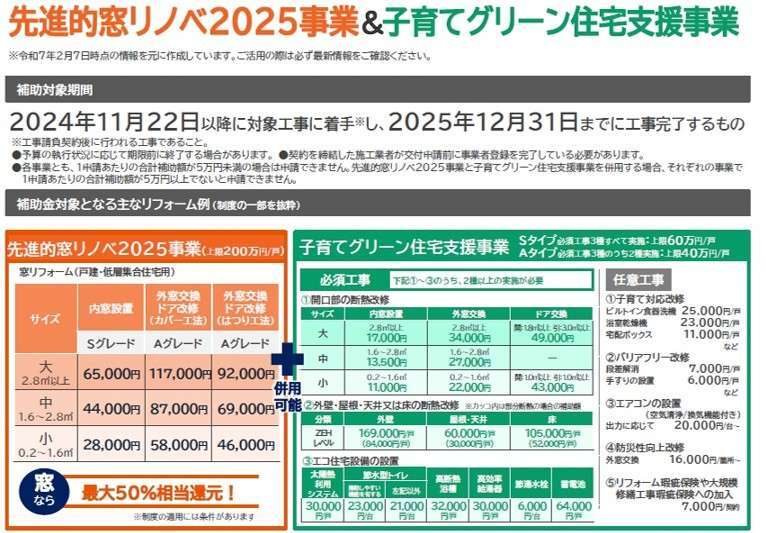 (断熱窓への改修を含むリフォーム工事全体をいう)に着手したものが補助対象