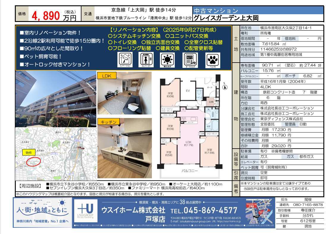 横浜市内でも人気の高い住環境で、90㎡超・4LDKの広さと、完成したばかりのフルリノベーションが手に入る貴重なマンションが登場しました。